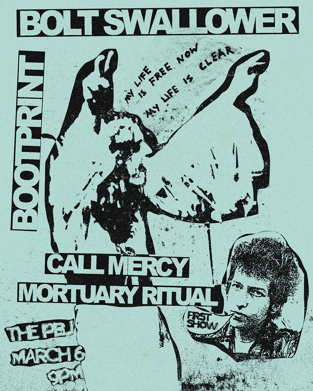 Bolt Swallower (Fairview, TN) / Bootprint (Huntsville, AL) play at the PBJ with locals Call Mercy and Mortuary Ritual (first show)