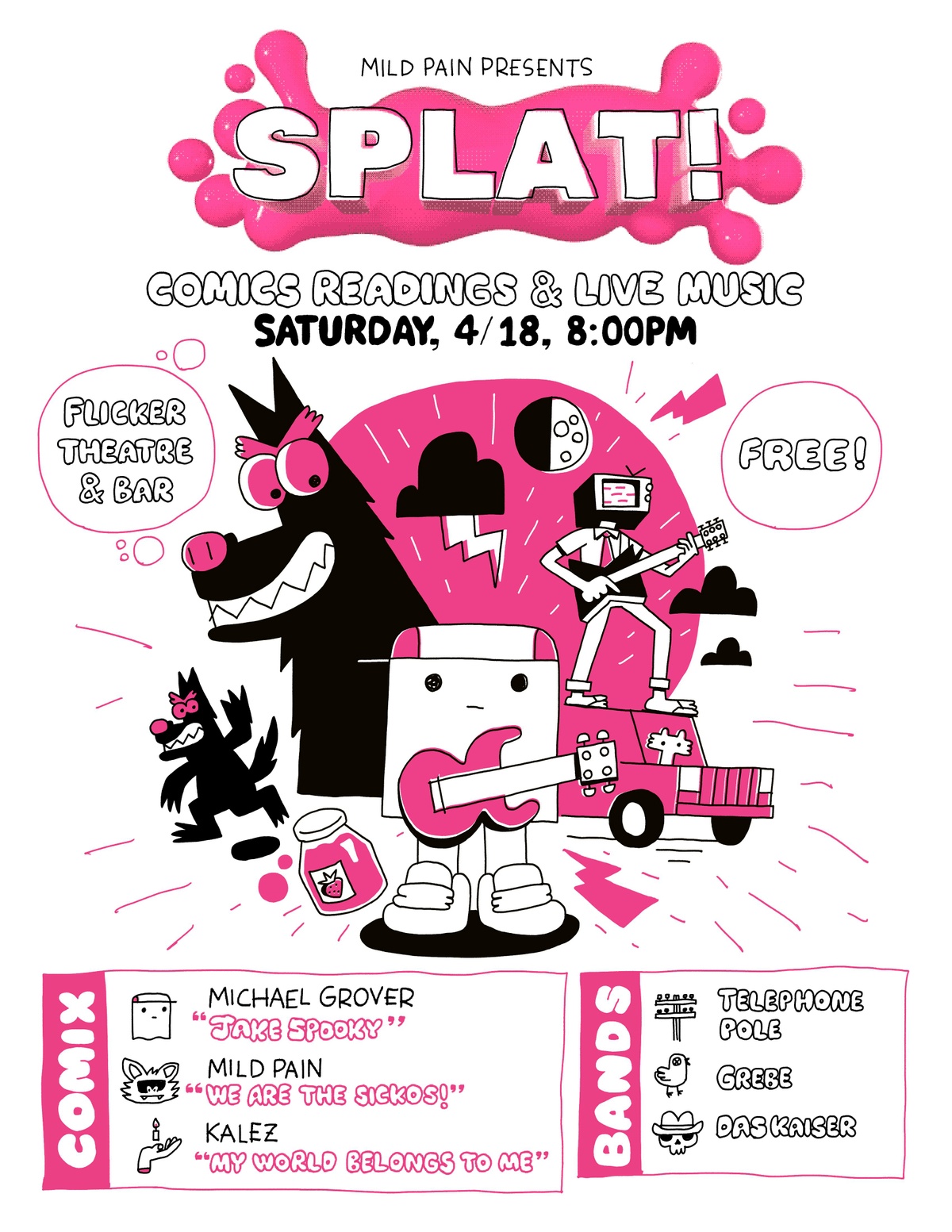 Mild Pain presents SPLAT! A live comic reading & music event, a match made in DIY, underground heaven